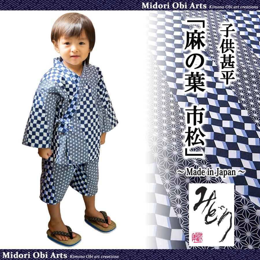 子供甚平 日本製 旅館浴衣 キッズ 男の子 ボーイ 子供 浴衣 和装 部屋着 ルームウェア 麻の葉市松 Kj Aim Midori Obi Arts 通販 Yahoo ショッピング